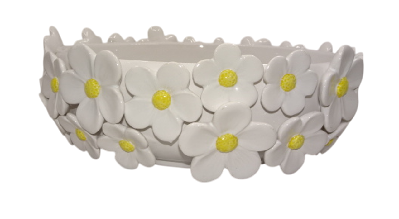 JR-222312 CENTRO DE MESA CERÁMICA 32X32X10 MARGARIDAS BRANCO