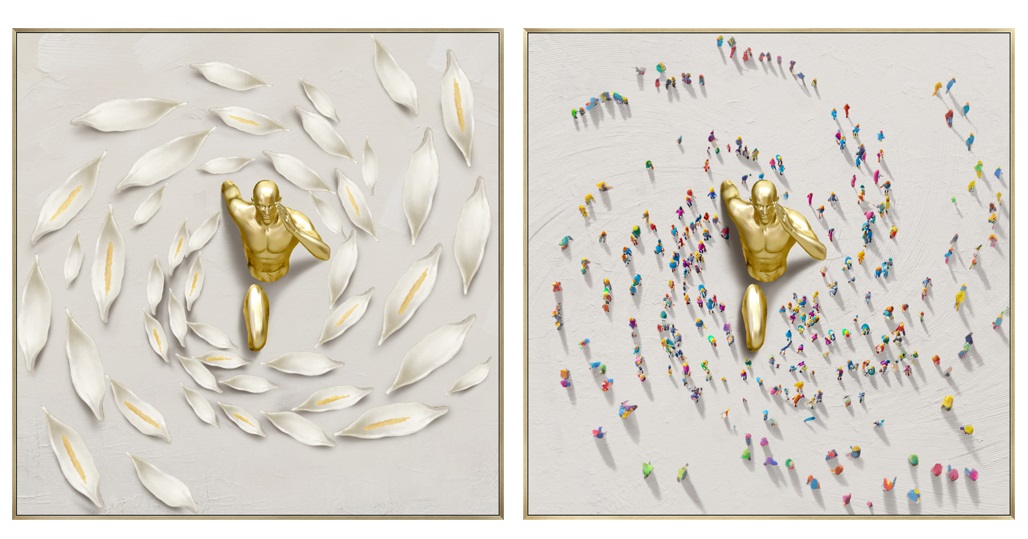 CU-226495 QUADRO TECIDO E TELA RESINA 80X17,5X80CM