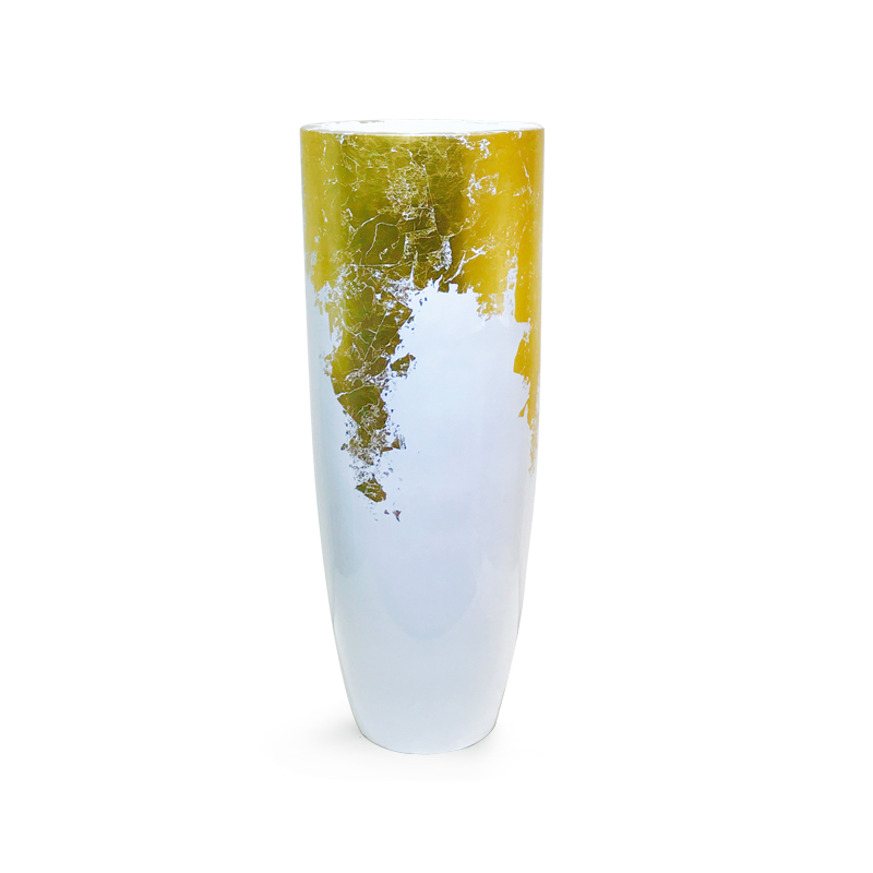 107028384 VASO RESINA BRANCO E OURO 39X39X100