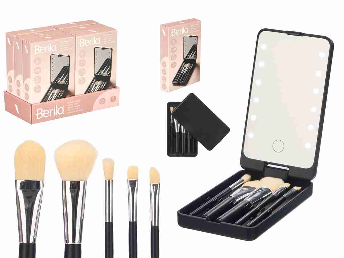 12353 CONJUNTO ESPELHO COM PINÇEIS MAQUILHAGEM