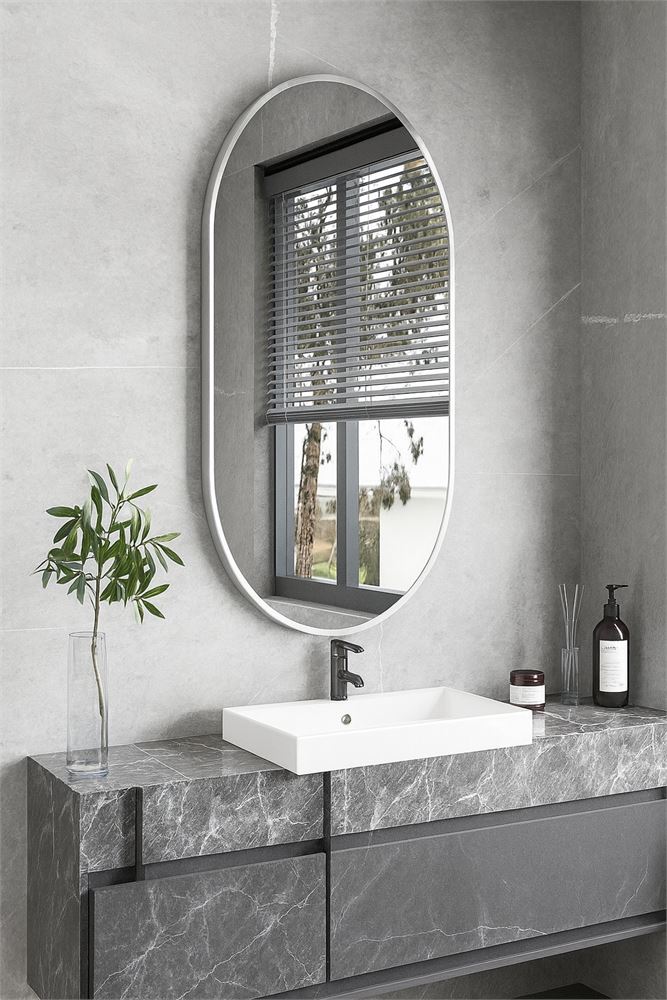 127034584 ESPELHO COM MOLDURA ALUMINIO PRATEADO 50X70CM