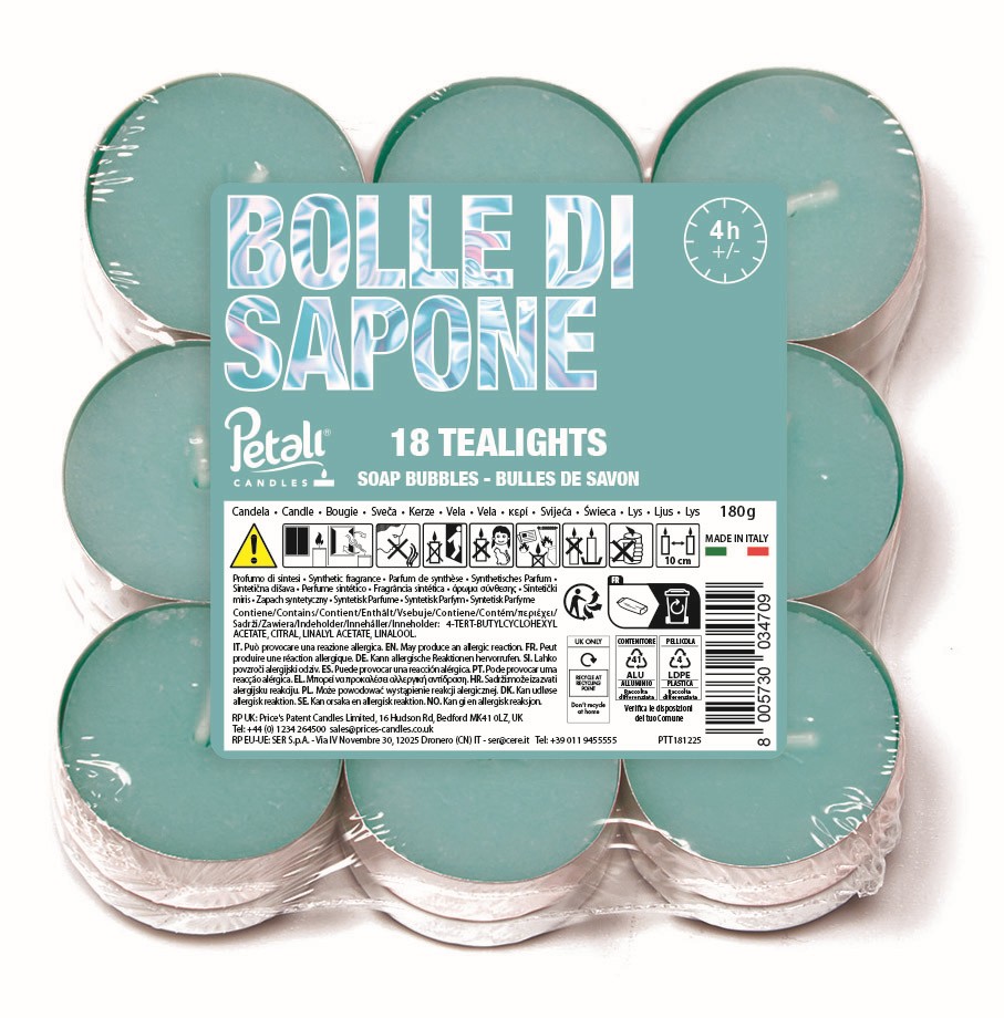 149173 VELA TEALIGHTS PK18 4H SOAP BUBBLE