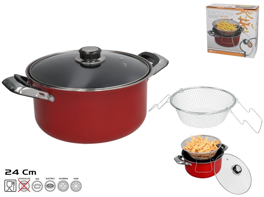 534626 FRITADEIRA C/TAMPA 24CM VERMELHA