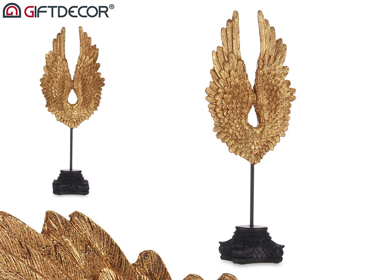 DECORAÇÃO ASAS ABERTAS DOURADAS BASE PRETA 17,5 x 10 x 43 cm.