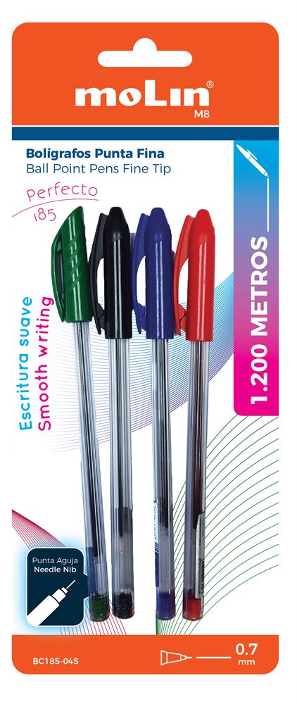 BC185-04-S MOLIN BLISTER 4 CANETAS ESFEROGRAFICAS