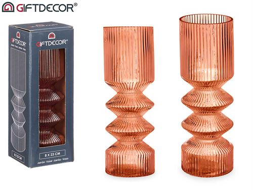 93720 JARRA VIDRO RISCAS TERRACOTA 8X23CM