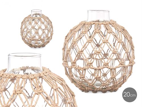 91436 JARRA VIDRO COM CORDA 21 x 21 x 23 cm.