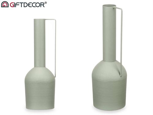 90930 JARRA AÇO DECORATIVA ASA DUPLA VERDE CLARA 46CM